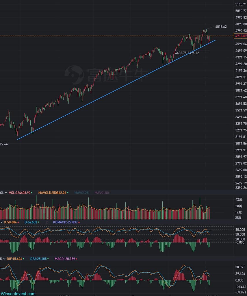 至於美股,整體SP500都是整體向上的,剛好到上升通道下沿開始反轉,並且是一支很漂亮的倒頭槌(Pin Bar),是一個比較好的反轉信號且剛好在60天線之上,所以也是一個比較看好的行情哦!