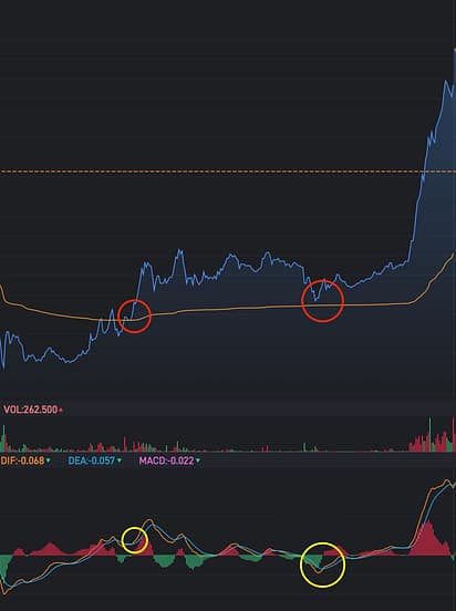 2. 配合MACD金叉可加強確定較佳的入場點: